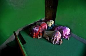 Kashmiri women offer prayers on a stairway outside a Muslim shrine during the holy month of Ramadan in Srinagar, India, Monday, June 30, 2014. Muslims across the world are observing the holy fasting month of Ramadan, where they abstain from food, drink and other pleasures from sunrise to sunset. (AP Photo/Mukhtar Khan)