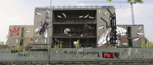 scappa in città perché per equilibrare la quiete ha bisogno di caos e panorami urbani. Sulla carcassa del PalaSalerno ha immaginato di dipingere i parassiti della decomposizione.