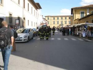 I pompieri si avviano verso piazza dei Miracoli per il flash mob