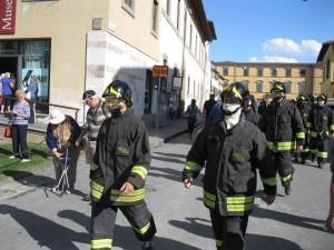 I vigili del fuoco in corteo verso la Torre di Pisa