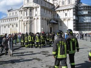 I vigili del fuoco vicino al Battistero, in piazza dei Miracoli