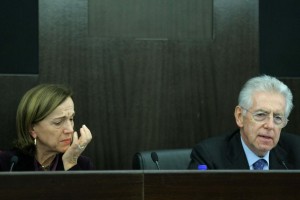 Nella foto l pianto di Elsa Fornero, Mario Monti