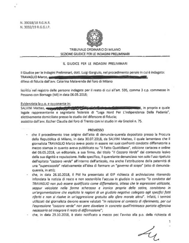 Dire “cazzaro verde” a Salvini si può. Ormai lo dice anche il giudice