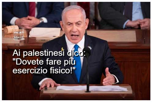 Gaza, Netanyahu: “I palestinesi stanno ingrassando così tanto che se ne andranno dalla Striscia rotolando!” (Silvio Perfetti)