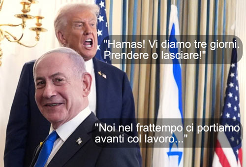 Il piano per Gaza, Netanyahu: “Se Hamas si rifiuta, finiremo il lavoro da soli con le buone o le cattive”. Curioso di conoscere le cattive. (Roberto Onnis)
