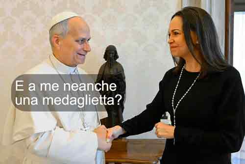 Il Papa riceve la politica venezuelana Corina Machado: “Il Nobel può lasciarlo sul comodino all’ingresso”. (Silvio Perfetti)