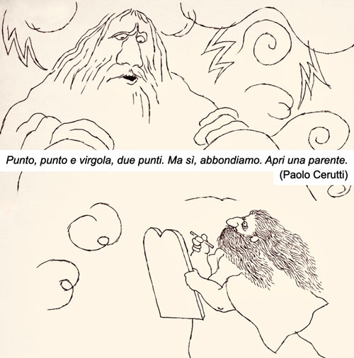 Dio: “Hai scritto tutto?” Mosè: “Certo, capo”. Dio: “Bene. Mo ce famo quattro risate”.(Simone Rossi)