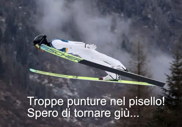 Saltatori con gli sci, acido ialuronico nel pene per aumentare aerodinamica e permanenza in aria. Spiegata la presenza di Rocco Siffredi nei cieli di Cortina. (Diego Merigo)