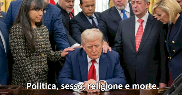 Il governo Meloni non è stato informato dell’inizio della guerra in Iran. L’Iran è bagnato al nord dal Mar Caspio. Il Mar Caspio veniva chiamato dal re Assiro Adadnerari III “Mar dell’Alba”. Alba Parietti 30 anni fa conduceva Macao. Macao si trova sul lato occidentale del delta del fiume delle Perle. Le perle si dice che sia meglio non regalarle perché associate alle lacrime. “Lacrime di pioggia” è una canzone di Antonello Venditti, il cui testo evoca un profondo processo di introspezione. L’introspezione, nei tarocchi, è simboleggiata dal due di coppe. MORALE: Il governo Meloni conta quanto il due di coppe (Giancarlo Gismondo)