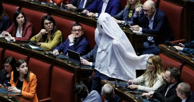 Riccardo Magi, di Più Europa, è entrato in Aula alla Camera vestito da fantasma mentre il capogruppo della Lega Riccardo Molinari stava intervenendo in occasione del premier time della premier. Il presidente della Camera Lorenzo Fontana ha immediatamente chiesto l’espulsione del deputato, portato via a spalla dai commessi di Montecitorio. “Si ricorda – urlava Magi rivolto alla presidente del Consiglio mentre veniva portato via – presidente Meloni quando accusava i governi di silenziare i referendum, di sfavorire la partecipazione. Se lo ricorda? Era il 2016 e 2022″. La premier ha assistito sorridendo.