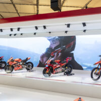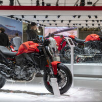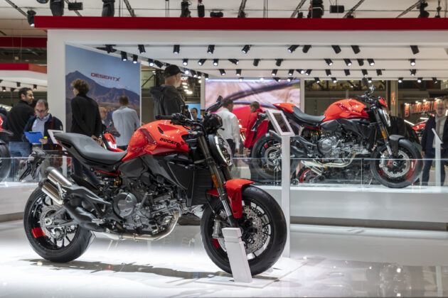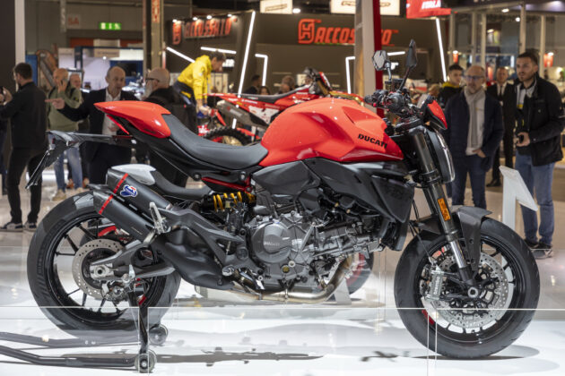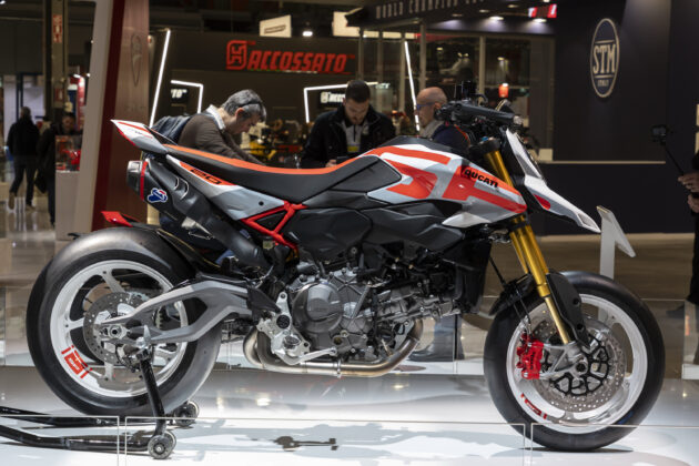 La casa di Borgo Panigale, fresca vincitrice della MotoGp con Marc Marquez, completa la transizione della sua gamma sul nuovo bicilindrico da 890cc e 120 cv che già equipaggiava Streetfighter V2 e Panigale V2. A beneficiarne sono le rinnovate Hypermotard e Hypermotard SP – giusto giusto nel ventennale del lancio – e la nuova Monster, già introdotta durante le Ducati World Premiere ma finalmente visibile anche dal vero. Novità anche sul fronte Rally, con la DesertX, anch’essa equipaggiata con il V2, ma per il momento in versione esclusivamente concept.
