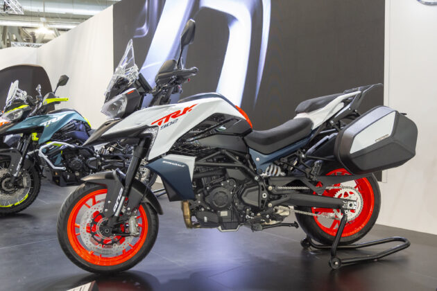 Italiana nel nome, cinese nella proprietà, Benelli si presenta a Eicma 2025 nel tentativo di replicare il boom della Trk 502 con le nuove Trk 602 e 902, quest’ultima declinata nelle varianti “Xplorer” e “stradale“. Il terreno è quello delle crossover adventure, vale a dire “adventour”: moto capaci di garantire comodità nei lunghi viaggi, ma che non disdegnano la strada bianca e polverosa. Benelli, che con la 502 aveva sfondato in un mercato un tempo dominato da Bmw e poi affollato via via da tutti i marchi ci riprova ora con la sorella maggiore: il motore bicilindrico da 95 cv è montato su un telaio a traliccio, mentre le sospensioni sono Marzocchi regolabili e le pinze affidate a Brembo. Ricca la dotazione elettronica: display TFT da 7 pollici, ABS, Traction Control, Cruise Control e sella e manopole riscaldabili. Tra la stradale e la Xplorer cambiano le gomme e i cerchi, con la seconda equipaggiata di anteriore del 19″ e gomme tassellate.