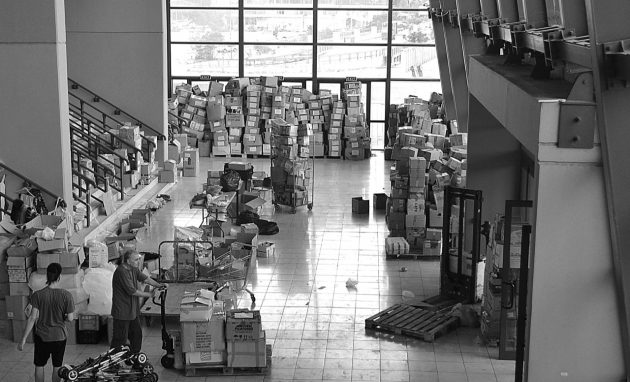 C’è pure una scala della vergogna con gli oggetti poco appropriati: tacchi alti e scarpe dai colori fosforescenti, poi minigonne e vestiti scollati. I volontari sospirano ogni volta che ci passano a fianco: “Forse il mondo non ha capito bene cosa succede qui”. Gli scatoloni arrivano con i container del mattino, se ne vanno con i furgoni dei volontari. Dentro le formiche che li smistano e li ordinano secondo qualità e forma, secondo le stagioni. Chi comanda è Katalina , ex dipendente dello Stato in pensione. Ha un foglio scarabocchiato dove cerca di dare ordine a quello che entra ed esce. Non ci riesce quasi mai. Il risultato è un caos di ingressi ed uscite, la frustrazione del non fare mai abbastanza. Poi succede che gli afghani si organizzano e rompono il vetro della palestra. Si intrufolano di notte e rubano i vestiti. E c’è da cominciare da capo. Un giorno hanno scoperto che qualcuno prendeva gli scatoloni e li rivendeva al mercato nero. Katalina ha pianto, ma era nascosta dentro il bagno e non se ne è accorto nessuno.