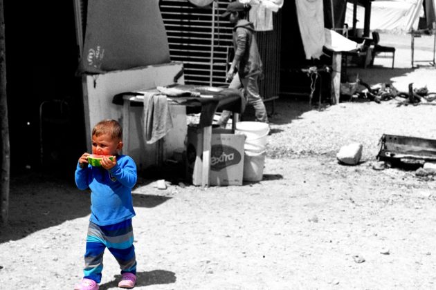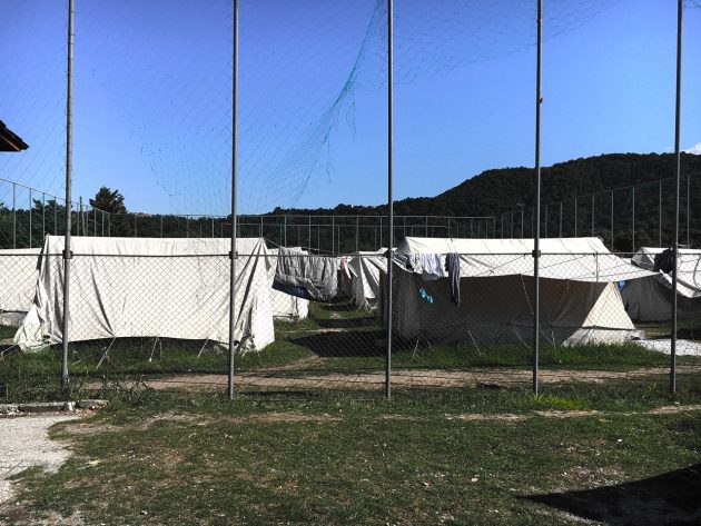 Nella Grecia dell’emergenza migranti qualcuno ha pensato che quello era il posto giusto per mettere 1231 rifugiati yazidi , minoranza religiosa perseguitata dai musulmani in patria ma pure nei campi migranti. “Qui saremo al sicuro”, dice una volontaria. “Fino a quando non arriverà l’inverno”. Parla al plurale perché lei, che è biondo platino e viene dall’Austria, rimarrà fino alla fine. Ci vorrà la neve di inizio dicembre per convincere il governo che deve spostare i migranti in strutture provvisorie per evitare che muoiano di freddo. Nel frattempo tutti aspettano. “Le persone possono andarsene quando vogliono, ma come?” Se per lasciare un posto hai bisogno dell’autorizzazione, allora è come stare in una prigione. Gli adulti vagano inquieti chiedendosi fino a quando durerà, fino a quando resisteranno. I bambini saltano la corda, cantano filastrocche in attesa che inizi la scuola. “Quella è casa mia”, dice Iona mentre indica una delle tende della spianata. “Ma non quella vera”.