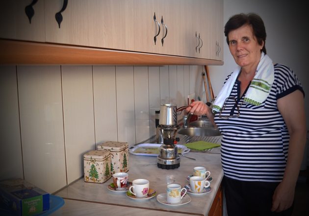 C’è Glyka che faceva la donna delle pulizie e a cui nessuno ha mai pagato l’assicurazione sanitaria. E’ lei a fare il caffè per volontari e utenti, sempre lei a occuparsi della cucina quando serve.