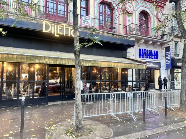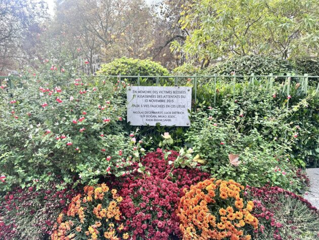 Se fuori non c’è traccia del dolore di quella notte, dentro le cose cambiano: è un luogo di clienti abituali e i nomi di chi non c’è più li conoscono a memoria. Lucie, Nicolas, Elif, Milko, Kheir-Eddine. A ricordarli ci pensa una targa piantata nel giardino di fronte. Dall’altro lato della strada invece, il locale che faceva cucina italiana, ha chiuso per sempre.