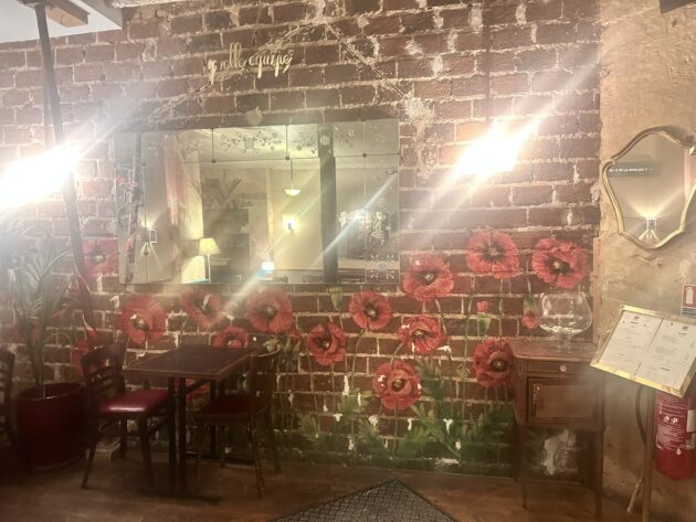 Alle 21.36 i terroristi arrivano alla Belle Équipe. Anche qui sparano contro la terrazza e uccidono ventuno persone. Di queste, nove sono baristi e camerieri. Oggi il bar non ha segni ufficiali, ma i proprietari hanno scelto di mettere su ogni tavolino un papavero. I papaveri sono anche su due affreschi all’ingresso, a destra e sinistra. Riempiono tutte le pareti.