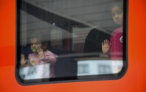 Migrants’ children look through a window of a suburban train taking them to a bus station in Munich, Germany September 5, 2015. Austria and Germany threw open their borders to thousands of exhausted migrants on Saturday, bussed to the Hungarian border by a right-wing government that had tried to stop them but was overwhelmed by the sheer numbers reaching Europe’s frontiers. REUTERS/Lukas Barth