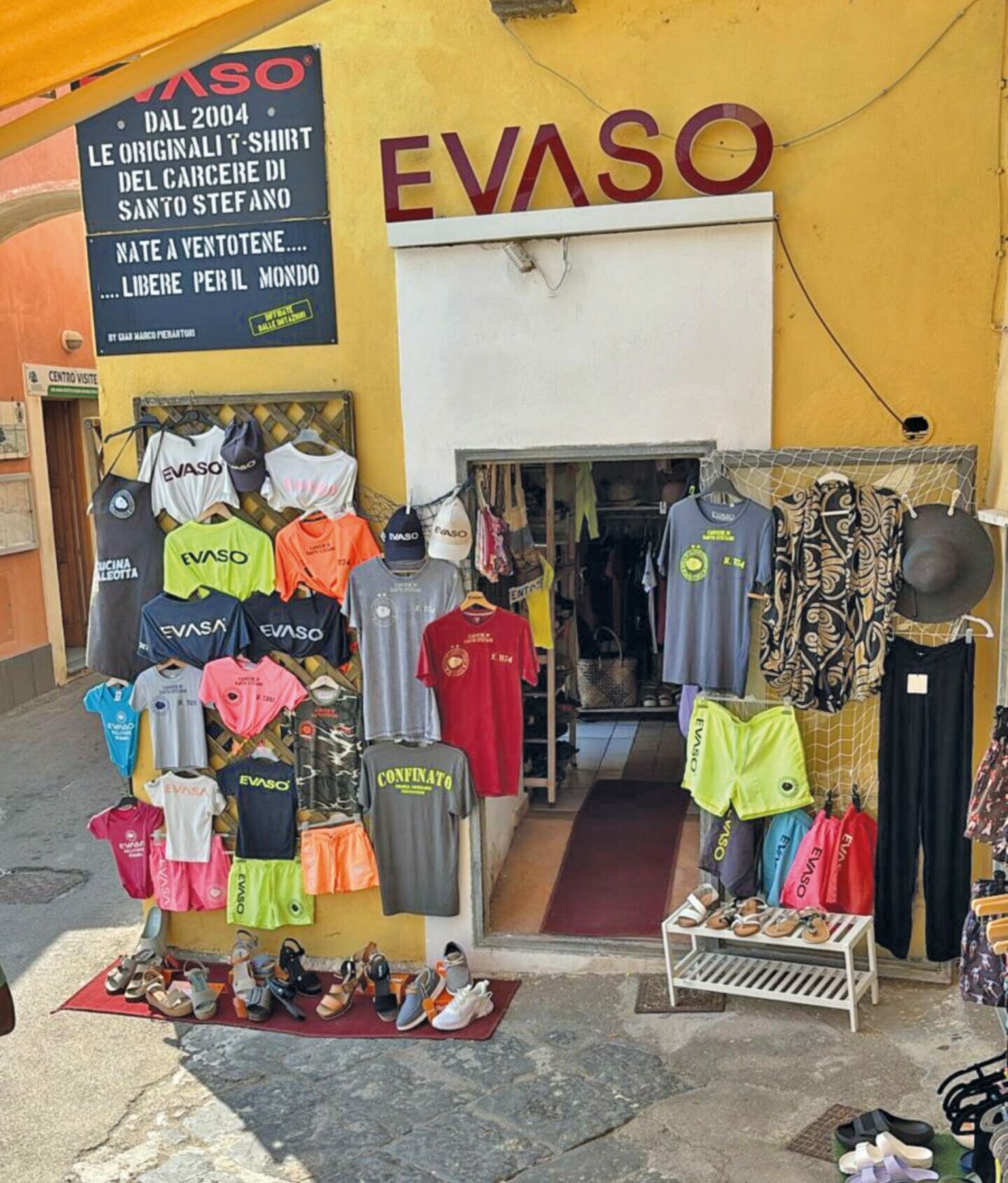Il Manifesto di Ventotene predica la fatidica giustizia sociale. Ma questo non ha impedito l’aumento stratosferico dei prezzi, come del resto accade in ogni altra località italiana di mare. Al forno più gettonato, nell’altra stradina laterale che sale da piazza Castello, c’è una fila interclassista sin dal mattino presto. Esempio del carovita in vacanza: quattro tranci di pizza rossa (senza mozzarella) quasi tredici euro. Negli anni del confino, i dissidenti erano organizzati in mense, una per ogni gruppo politico. I comunisti gestivano persino un pollaio dentro un vero kolkoz (anche una mucca e vari maiali), mentre Sandro Pertini per un breve periodo fu il capo della mensa dei socialisti. Sepolto dalle ambizioni epicuree del pueblo vacanziero, lo spirito di Ventotene, oltre che in lapidi e murales, sopravvive nell’enclave libraria dell’Ultima Spiaggia, che vende tomi su ogni aspetto storico dell’isola. Più controverso, invece, lo spirito tradotto in merchandising da un imprenditore locale che ha registrato persino il marchio “Confinato a Ventotene” per magliette, costumi, teli e altro ancora. E così in giro si vedono ignari turisti con queste magliette indosso per ostentare uno stato di grazia per il loro soggiorno, ma che originano da una tragedia politica fatta di reclusione e spesso di morte. In ogni caso il copyright morale del confino vacanziero è di Silvio Berlusconi, che più di vent’anni fa sentenziò: “Mussolini non ha mai ammazzato nessuno: mandava la gente in vacanza al confino”.