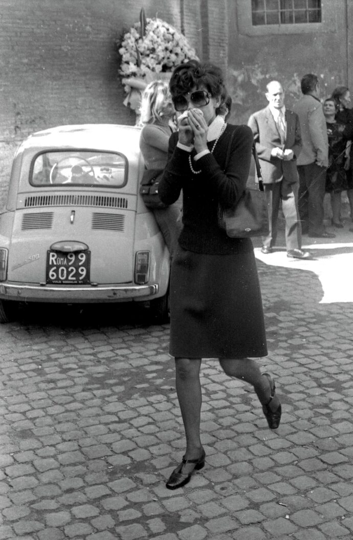 Anna verrà. Il 28 settembre del 1973 si tennero a Roma i funerali di una delle più grandi attrici italiane di sempre: Anna Magnani. Colpiscono, in questi tempi di overdose esequiale, gli arrivi solitari di Alberto Sordi e di Audrey Hepburn (a sinistra), senza transenne, né altro. Per l’ultimo saluto a “Nannarella” furono migliaia i partecipanti al rito nella Basilica di Santa Maria sopra Minerva