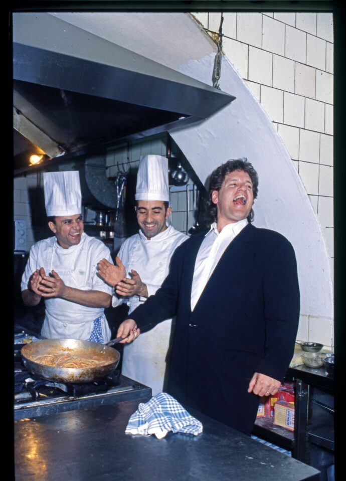Come il cortile di una seconda casa per vacanze. Un Paese Usa e getta per le grandi dinastie presidenziali della Casa Bianca. Ivana Trump (1949-2022) è stata una delle facce patinate e dolcevitose, non senza massicce inoculazioni di botox, dell’italianismo a stelle e strisce. Consorte di The Donald fino al 1992, la bionda ceco-americana Ivana (Melania, invece, è di nascita slovena) ha poi avuto un paio di mariti italiani e ha svernato e svacanzato tra Roma, Capri, Cortina e così via. Anche i Kennedy, per passare al fronte democratico degli Stati Uniti, a partire da JFK avevano un’intensa consuetudine con il nostro Paese: il loro punto di riferimento era un’altra dinastia, stavolta autoctona. Quella degli Agnelli, incarnata per lustri dall’Avvocato viveur: nelle pagine seguenti Gianni Agnelli (1921-2003) scorta Ted Kennedy (1932-2009), il fratello più piccolo di John Fitzgerald e di Bob. Dal fatidico e salvifico Piano Marshall del 1947, dopo la Seconda guerra mondiale, l’Italia ha avuto in pratica il rango di cinquantunesimo Stato americano o di protettorato yankee generando due fenomeni opposti: americanismo e anti-americanismo. Uno scontro che è sconfinato finanche in cucina. Nell’ultima pagina pizziana c’è un altro fratellino presidenziale: è Roger Clinton, che spadella a bocca aperta una densa amatriciana. È la sindrome sordiana dei macaroni, decisamente nemica del fast food importato dagli Stati Uniti. Quando nel 1986 McDonald’s aprì in piazza di Spagna, a Roma, ci fu un comizio contro la famosa catena di panini. Sul palco accanto a Renato Nicolini, Claudio Villa, Giorgio Bracardi c’era anche Bombolo. Per certi versi, il comizio più efficace contro il colonialismo Usa e getta.