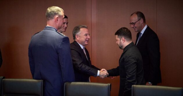 “Congelare la linea del fronte“, è la prima proposta formulata da Kiev nell’incontro con gli inviati Usa Steve Witkoff e il genero di Trump, Jared Kushner, rispetto alla pretesa russa di annettere tutto il Donbass. L’Ucraina si è detta poi disposta ad un compromesso sulla Nato: la rinuncia alla piena adesione in cambio di garanzie di sicurezza da parte degli americani. Accanto al leader ucraino, per un saluto iniziale, c’era il padrone di casa Friedrich Merz, in rappresentanza di un’Europa che lunedì schiererà un gruppo di leader, inclusa Giorgia Meloni, attorno ad un tavolo. Il presidente ucraino ha assicurato di essere “pronto al dialogo”, ma senza voler cedere su tutta la linea. Rispetto al nodo dei territori, Zelensky ritiene che un’opzione di cessate il fuoco equa e realistica potrebbe essere il principio del “restiamo dove siamo”, cioè le parti mantengono le loro posizioni attuali e tutte le questioni verranno risolte per via diplomatica. “Se le truppe ucraine si ritirano di 5-10 chilometri, perché le truppe russe non dovrebbero ritirarsi della stessa distanza nei territori occupati?”, è l’obiezione posta agli americani rispetto alla loro idea di creare una sorta di zona cuscinetto demilitarizzata.